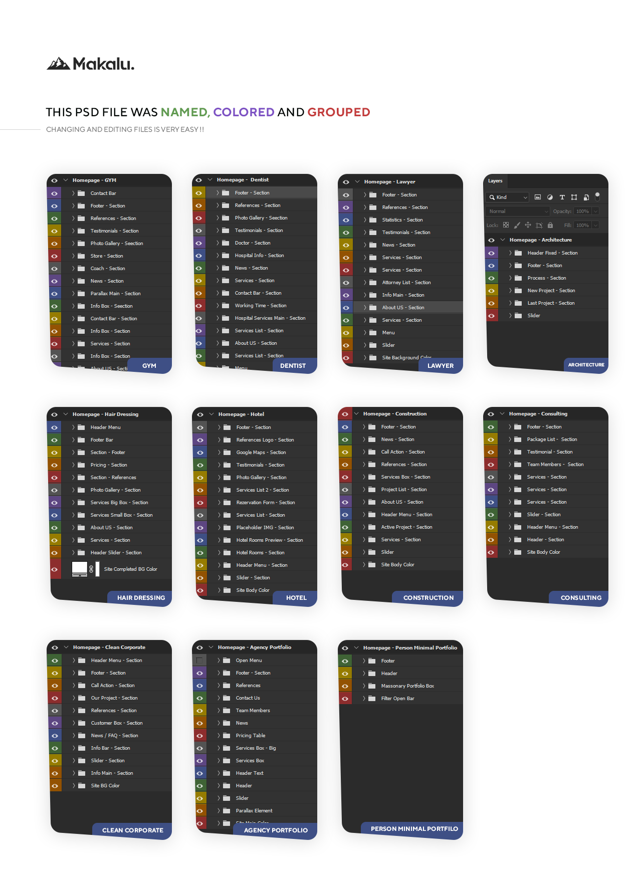 Makalu - After you buy the PSD file, you can change or update colors and locations easily