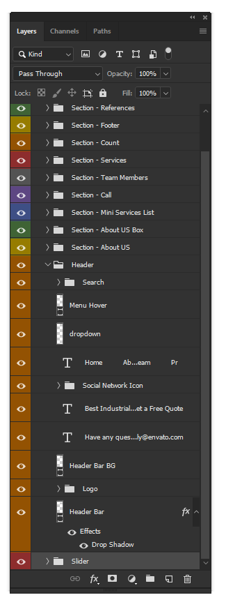 All groups and layers were named and coloured one by one. So you can work with them easily.