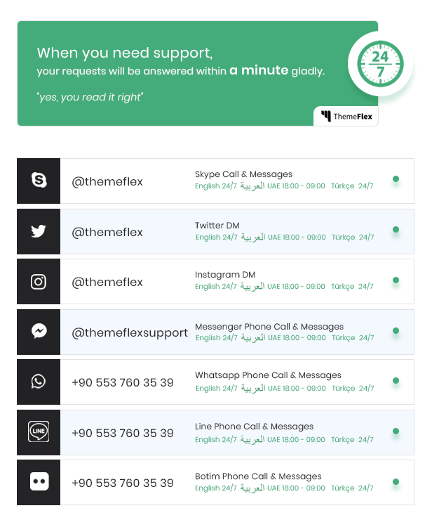 Corporate Template | Whatsapp Support Call & Messages ( 24-7 )
